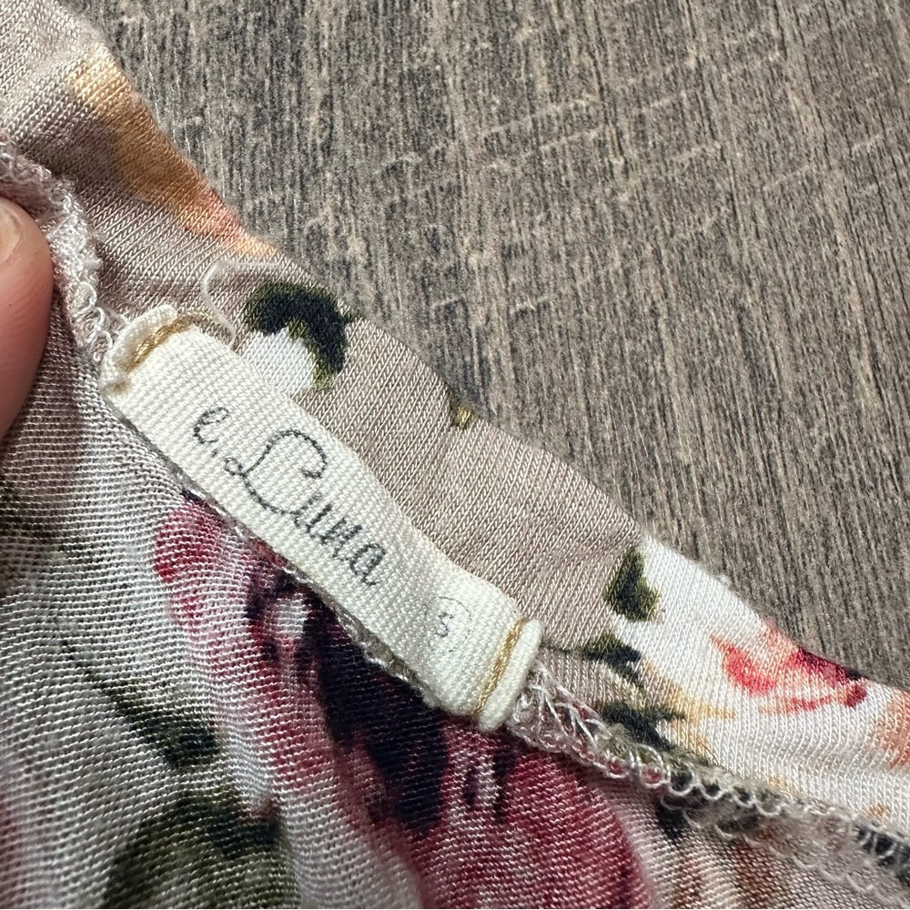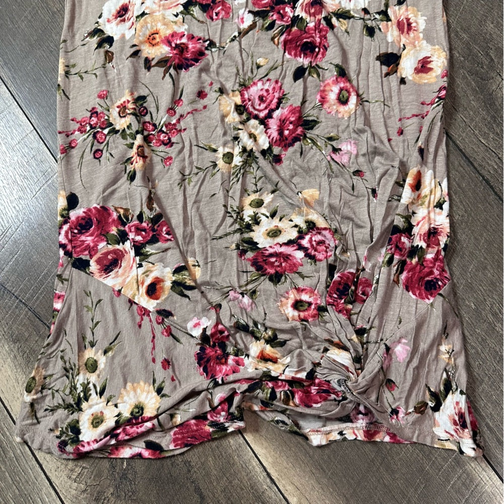E. Luna Floral Twist Bottom Short Sleeve Top