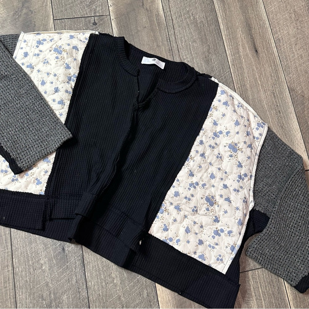 Everyday Chic Patchwork Waffleknit Oversized Pullover