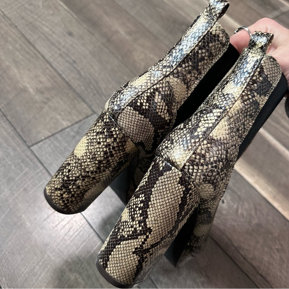 Shoedazzle Snakeskin Ankle High Heel Platform Booties