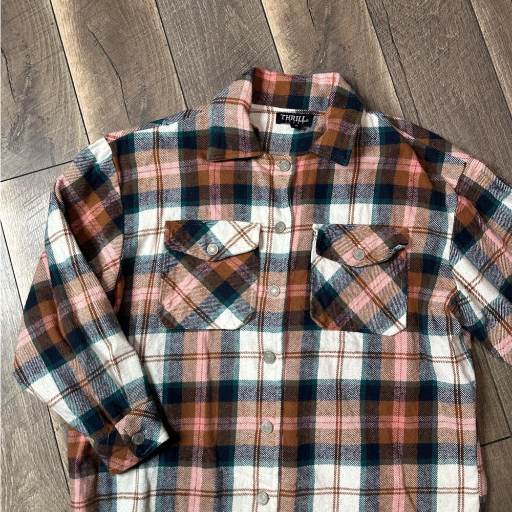 Thrill Jeans Plaid Flannel Button Down Shacket