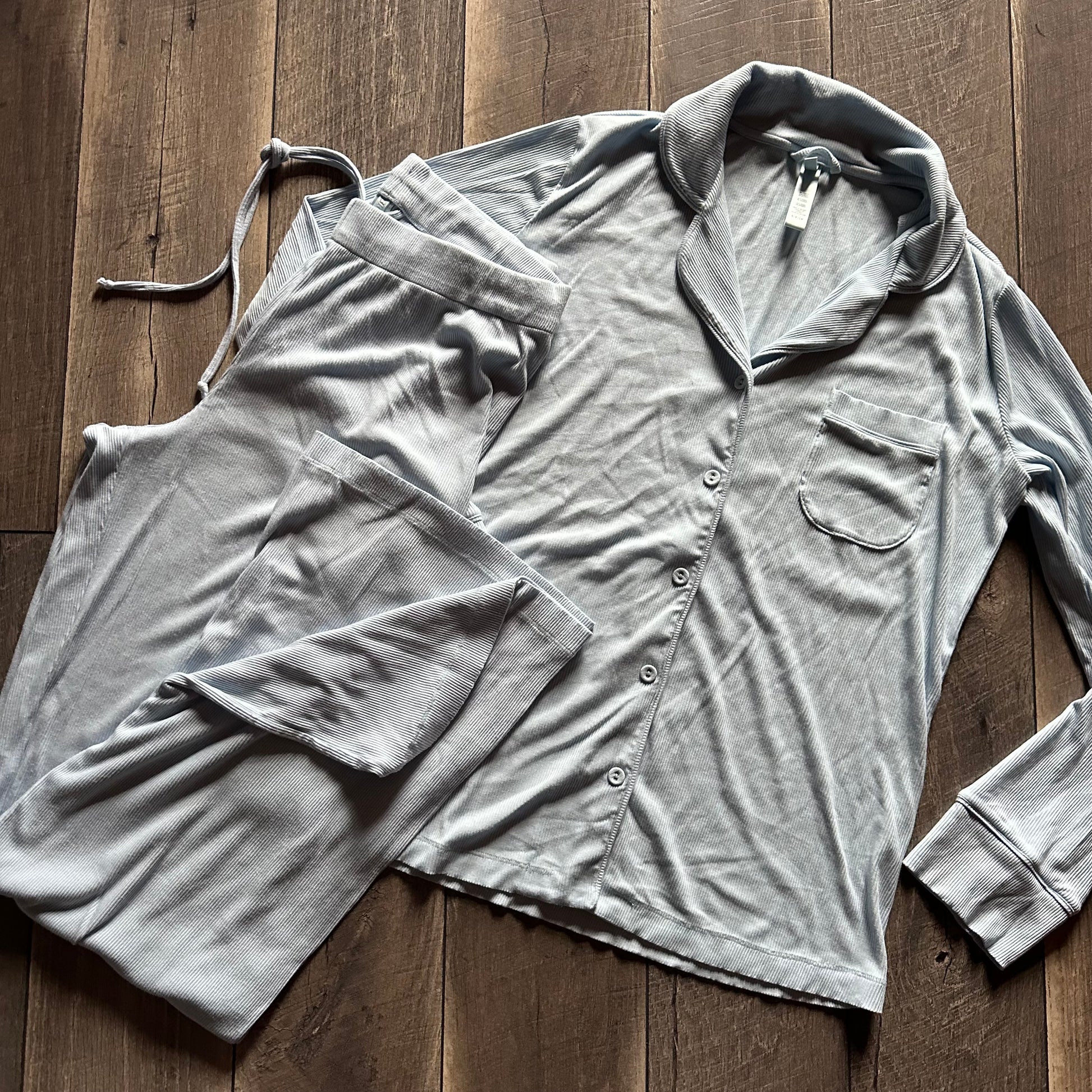 Skims Sky Blue Ribbed Pajama Set (like new)